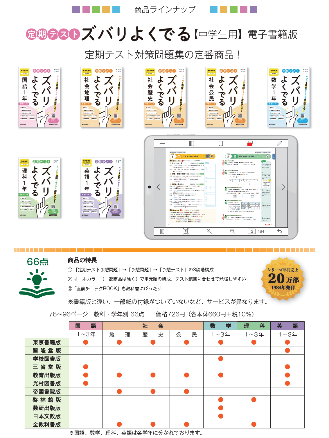 【電子書籍】定期テスト ズバリよくでる 数学1年 ...